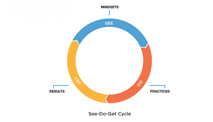 Les résultats que nous OBTENONS dans la vie dépendent de ce que nous FAISONS. Ce que nous FAISONS dépend de notre façon de VOIR le monde qui nous entoure. Si vous voulez changer vos résultats, commencez par changer votre mentalité.